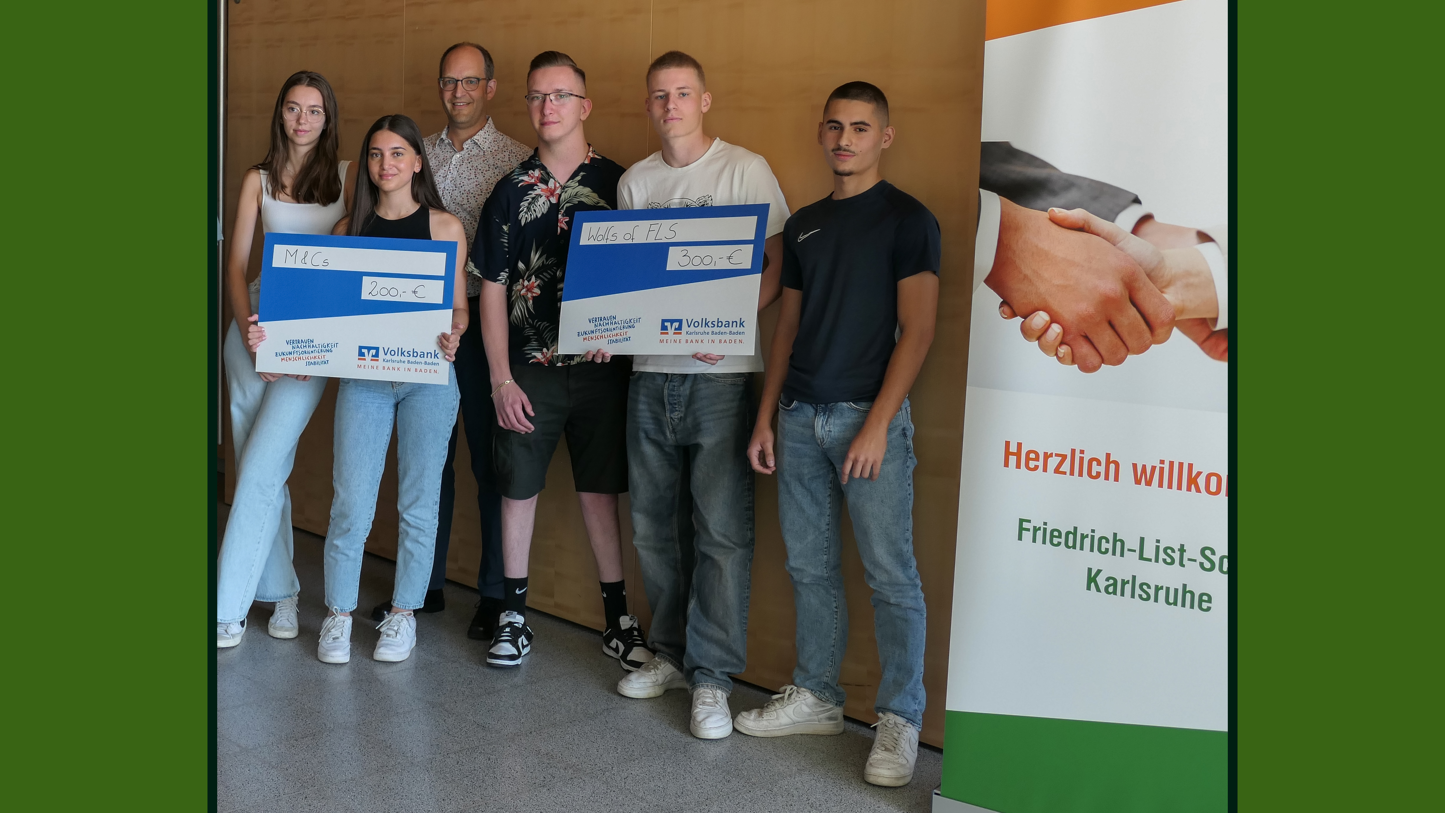 Die Schülerteams der FLS belegten die Plätze 1 bis 3 und erhielten dafür jeweils einen Scheck für ihre Klassenkassen: 100 Euro erhielt der Kurs für privates Vermögensmanagement (PV) von Frau Schorb, 200 Euro sowie 300 Euro erhielten zwei PV-Kurse von Herr Adams. Das Siegerteam "Wolf of FLS" war das einzige, das sein Startkapital während des Cups vermehren konnte.