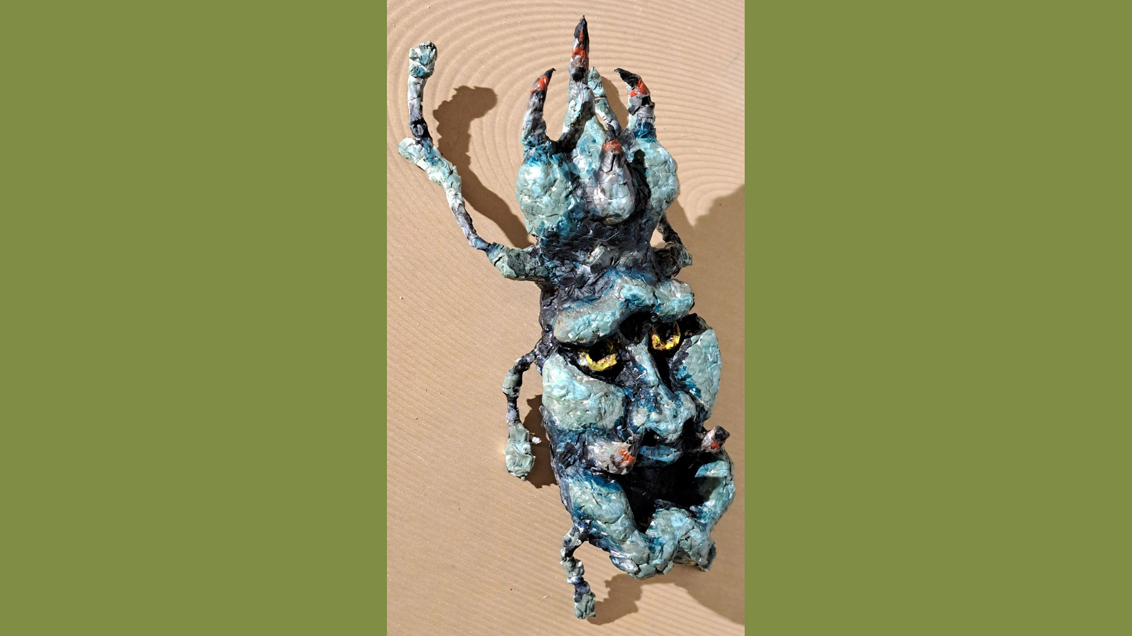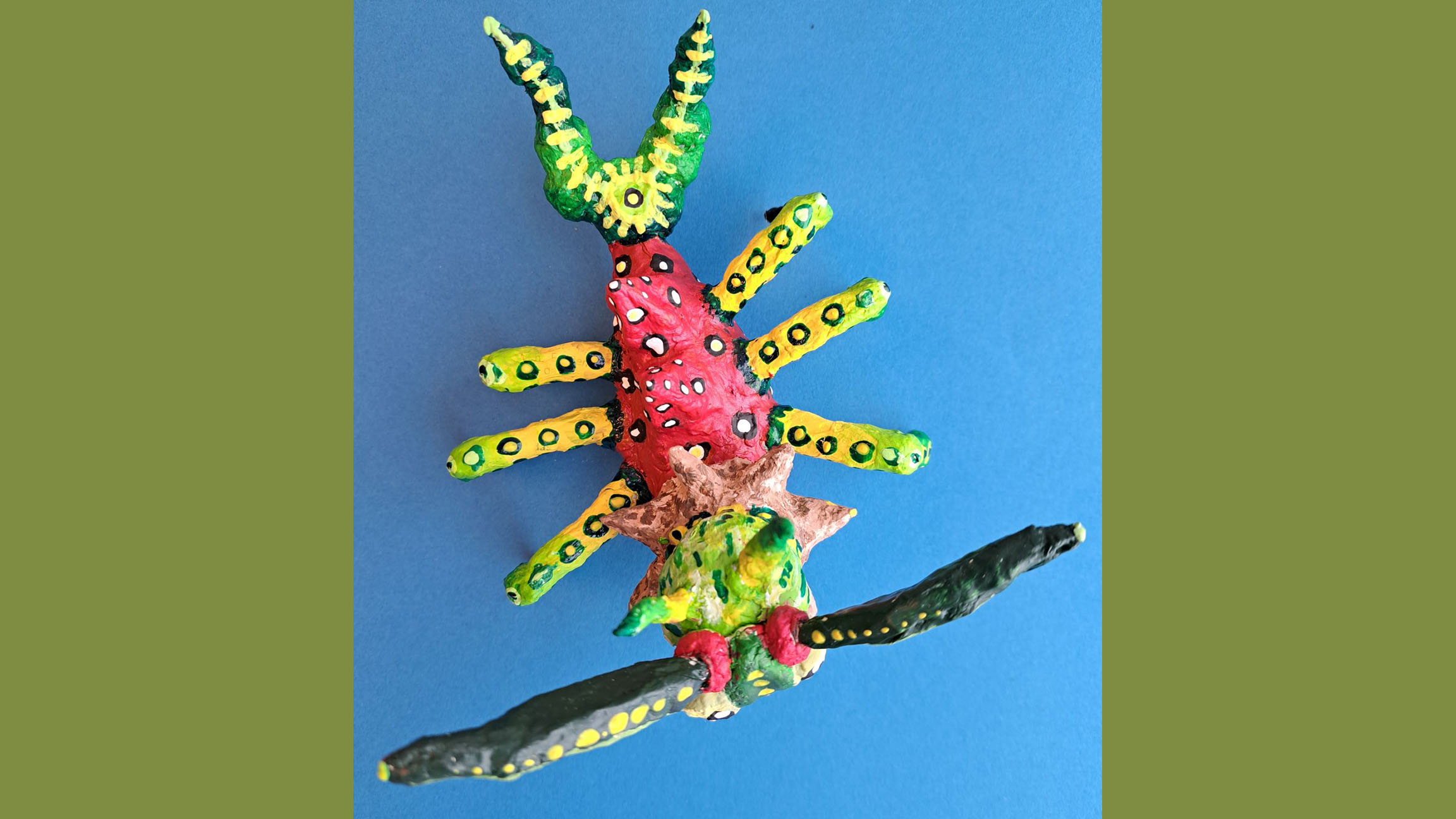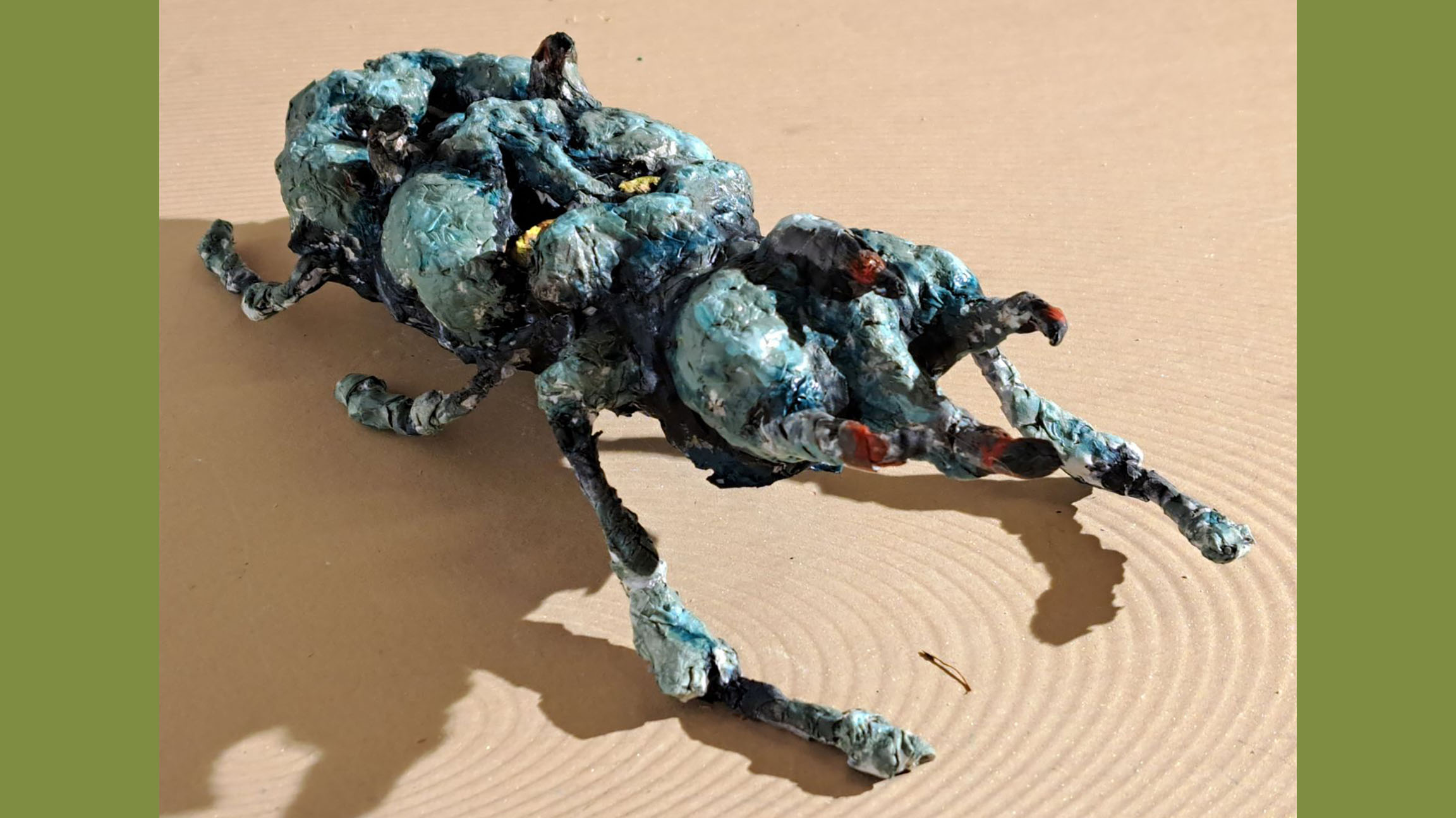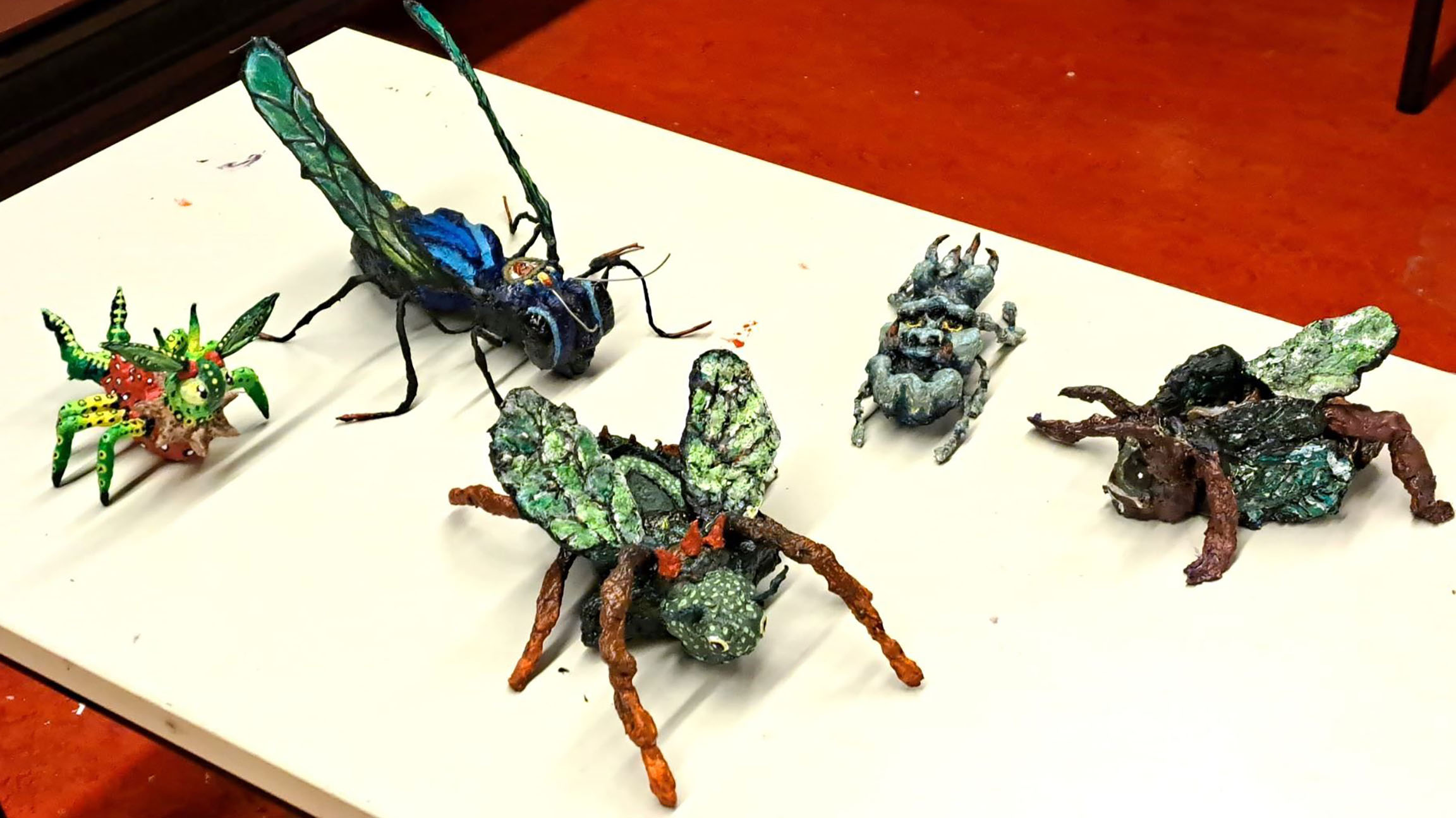 Die Schülerinnen und Schüler des Kunstkurses hatten die Aufgabe, ein Insekt oder anderes Getier mit mehreren unterschiedlichen Körperteilen zu erschaffen. Dabei sollte kein konkretes Tier nachgebildet, sondern die eigene Fantasie miteinbezogen werden. Die Körperteile sollten detailliert gestaltet werden.