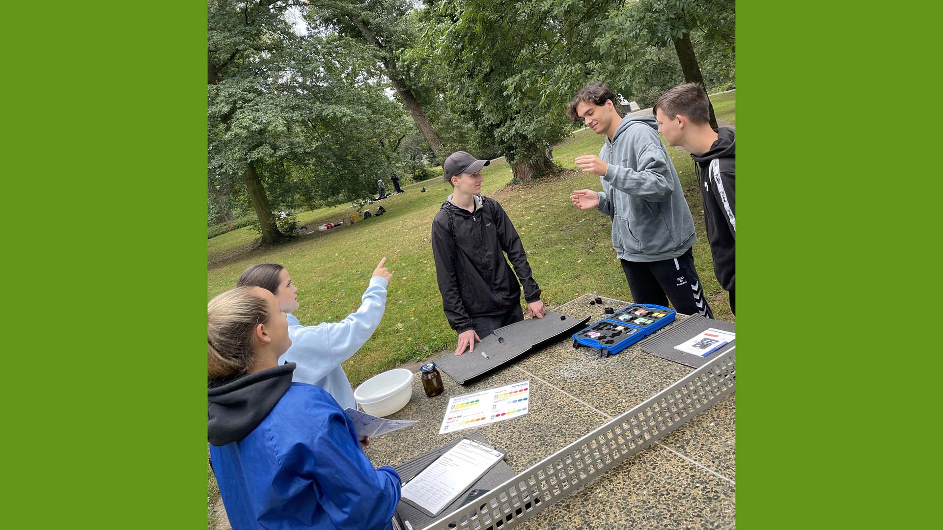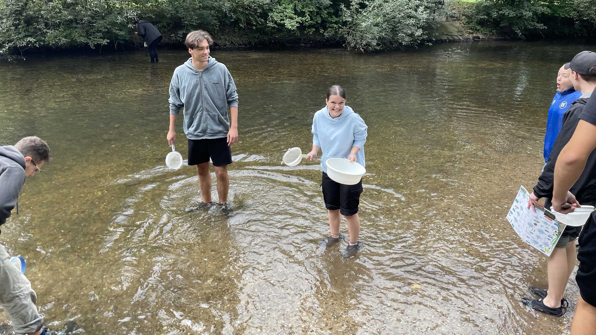 Obwohl die beiden Biologiekurse gerade noch mitten in der Zellatmung und der Fotosynthese „stecken“, sollte einer der letzten warmen Tage in diesem Jahr genutzt werden, um mit einer Exkursion bereits auf das nächste Thema „Ökologie“ einzustimmen. Am 21. September gingen die Schülerinnen und Schüler mit ihren Biologielehrerinnen Frau Sigel und Frau Neutard an die Alb. Angeleitet durch das Naturschutzzentrum Karlsruhe-Rappenwört führten die Schülerinnen und Schüler verschiedene chemische und biologische Gewässeruntersuchungen durch und konnten somit Aussagen über die Wasserqualität der Alb treffen, die zur Überraschung der meisten auffallend gut war. Besonders das gemeinsame Kechern in der Alb sorgte bei vielen Schülerinnen und Schülern für Spaß und entflammte eine regelrechtes Jagdfieber auf sogenannte Bioindikatoren wie Bachflohkrebse, Grundwanzen und Flussnapfschnecken. Wir bedanken uns recht herzlich bei Frau Pimentel und ihrem Team für diese schöne Erfahrung, die wir so im Klassenzimmer selbstverständlich nicht bieten können.