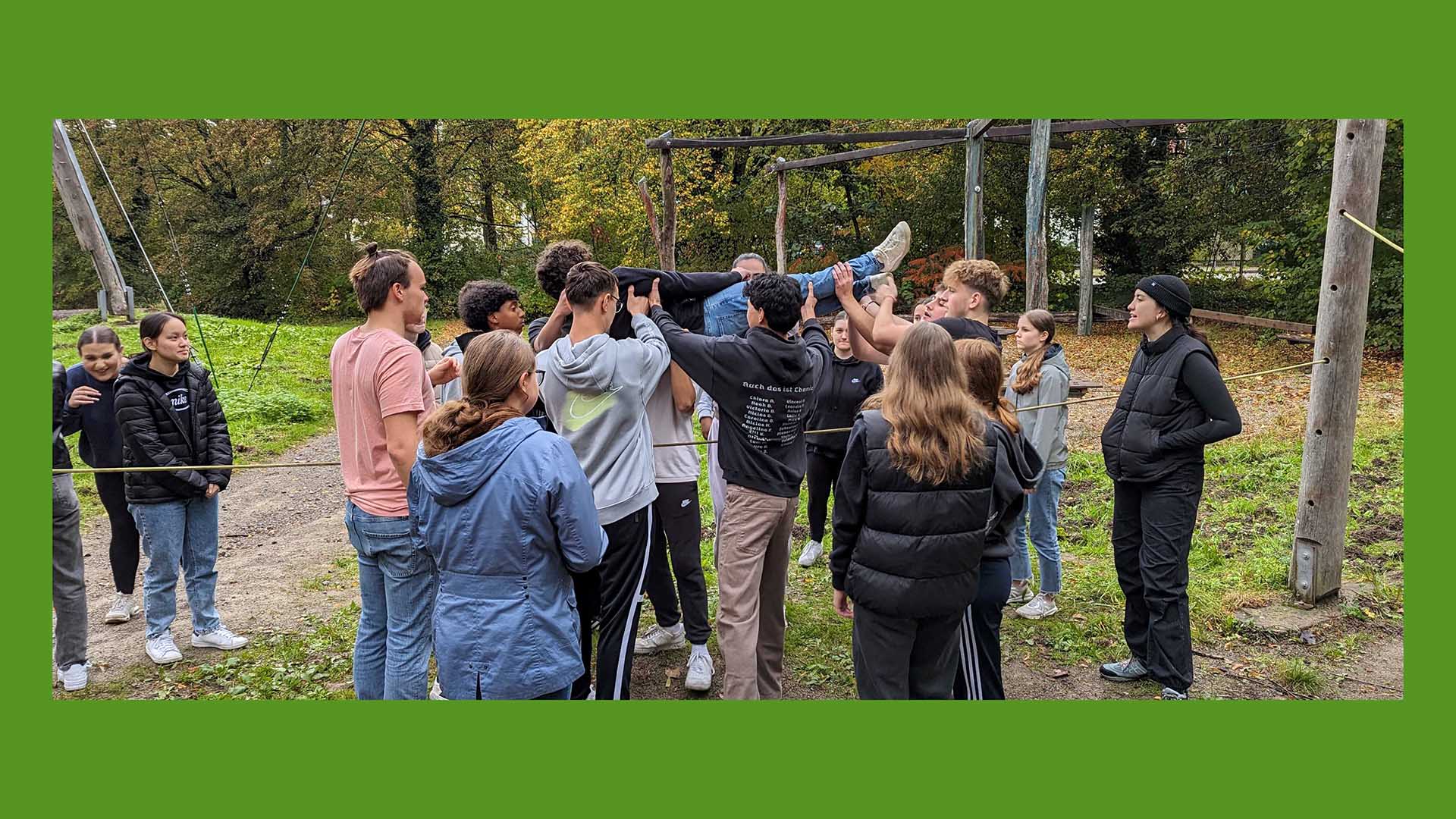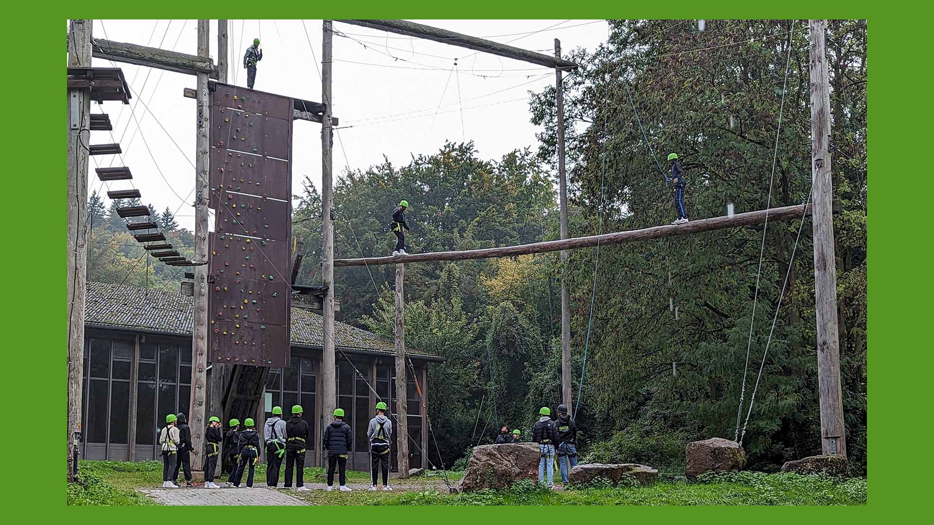 Am 19.10.23 fuhren wir als Klasse in den Kletterpark G.A.T.E. e.V. nach Ettlingen. Gemeinsam bewältigten wir dort vielfältige Teamübungen, anschließend ging es hoch hinauf in den Kletterparcours. Der Ausflug forderte unseren Mut im Kletterparcours heraus und schweißte die Klasse zusammen; der positive Einfluss auf unserer Klassengemeinschaft war schon deutlich spürbar und als Klasse haben wir gleich zu Schuljahresbeginn für schöne Erinnerungen gesorgt.