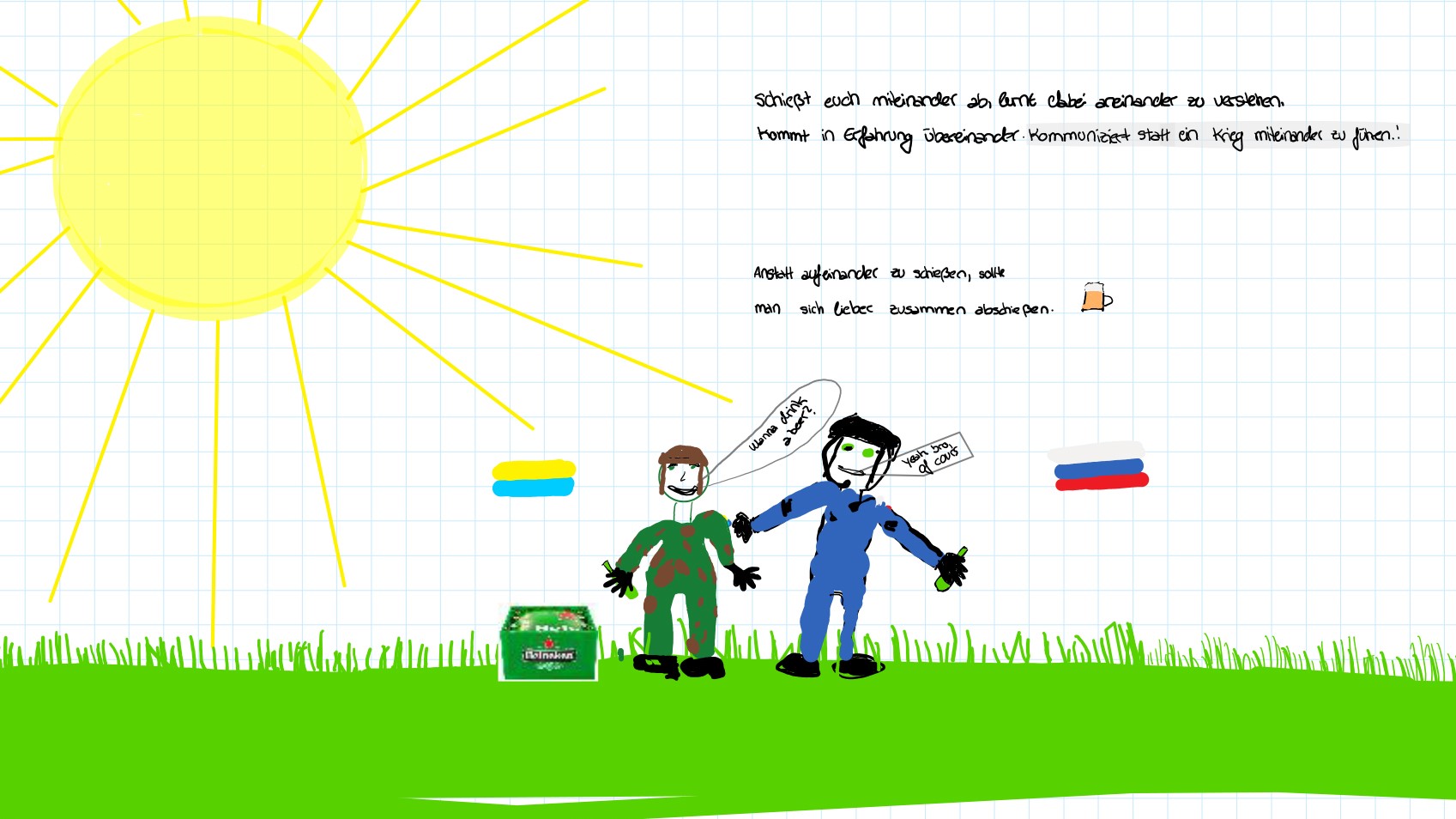 Im Rahmen des Französisch- und Ethikunterrichts haben sich Schülerinnen und Schüler mit dem Thema "Frieden" auseinandergesetzt und ihre Gedanken in Form von Gedichten, Poetry Slams und Zeichnungen zum Ausdruck gebracht. Das Thema "Frieden" ist nicht nur in diesen aufwühlenden Zeiten wichtig, sondern sollte immer als ein Prozess verstanden werden, an dem wir alle tagtäglich beteiligt sind und schon im Kleinen etwas Großes schaffen können. Ein großes Lob an unsere Schülerinnen und Schüler, die sich mit dieser Thematik sehr differenziert beschäftigt haben.