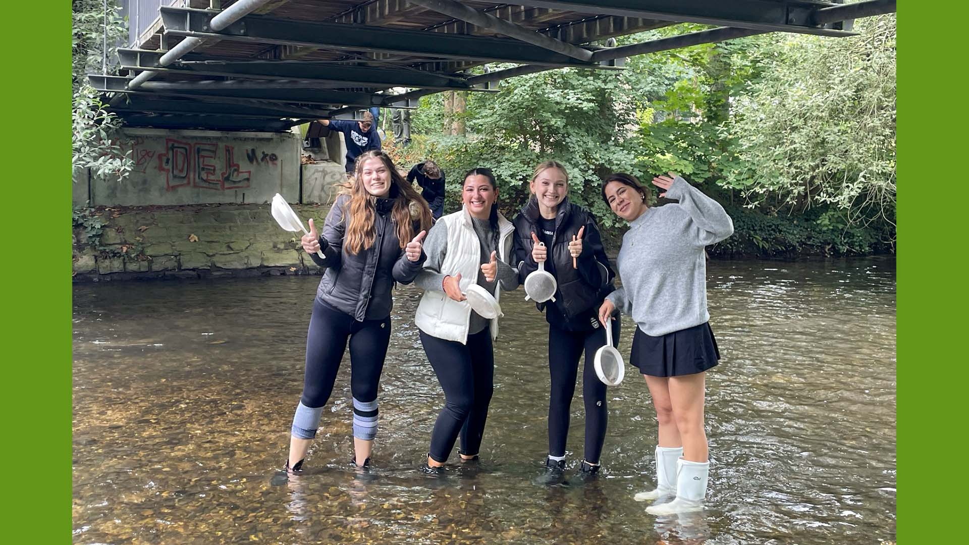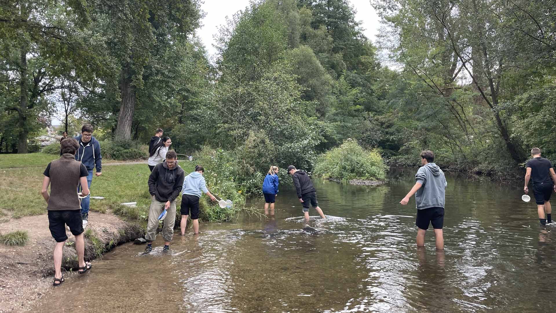 Obwohl die beiden Biologiekurse gerade noch mitten in der Zellatmung und der Fotosynthese „stecken“, sollte einer der letzten warmen Tage in diesem Jahr genutzt werden, um mit einer Exkursion bereits auf das nächste Thema „Ökologie“ einzustimmen. Am 21. September gingen die Schülerinnen und Schüler mit ihren Biologielehrerinnen Frau Sigel und Frau Neutard an die Alb. Angeleitet durch das Naturschutzzentrum Karlsruhe-Rappenwört führten die Schülerinnen und Schüler verschiedene chemische und biologische Gewässeruntersuchungen durch und konnten somit Aussagen über die Wasserqualität der Alb treffen, die zur Überraschung der meisten auffallend gut war. Besonders das gemeinsame Kechern in der Alb sorgte bei vielen Schülerinnen und Schülern für Spaß und entflammte eine regelrechtes Jagdfieber auf sogenannte Bioindikatoren wie Bachflohkrebse, Grundwanzen und Flussnapfschnecken. Wir bedanken uns recht herzlich bei Frau Pimentel und ihrem Team für diese schöne Erfahrung, die wir so im Klassenzimmer selbstverständlich nicht bieten können.
